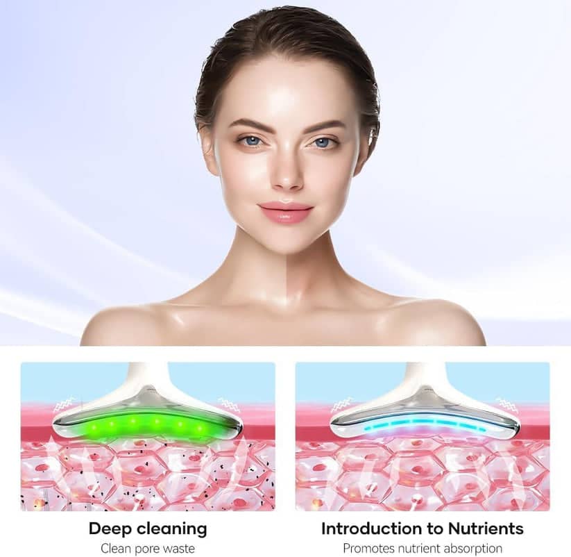 الضوء الأحمر: يساعد في تحفيز الكولاجين وتحسين مرونة البشرة.