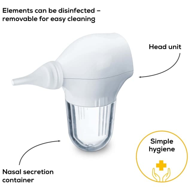 يستخدم الجهاز لإزالة المخاط من الأنف لتخفيف الاحتقان، ما يساعد على تحسين تنفس الطفل وتخفيف الأعراض الناتجة عن نزلات البرد أو الحساسية.