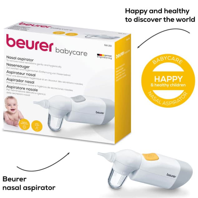 جهاز Beurer NA 20 هو جهاز شفط مخاط الأنف للأطفال والرضع مصمم لتنظيف مسالك الأنف برفق وبطريقة صحية، مما يساعد الطفل على التنفس بسهولة، الأكل بشكل أفضل، والنوم براحة أكبر، خاصة عند الإصابة بالزكام أو احتقان الأنف. هو من منتجات العناية بالأطفال من شركة Beurer الألمانية المُعروفة في أجهزة الصحة والعناية المنزلية.