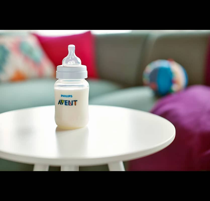 ملء الزجاجة بالحليب بدرجة الحرارة المناسبة للرضيع.